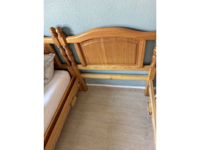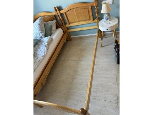 Aquí vendo 2 somieres de madera muy bien conservados que miden 90 x 190 cm por poco dinero. Sin colchones ni somieres. Los tornillos están incluidos. Se configuran muy rápidamente.
