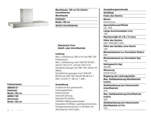Campana extractora de acero inoxidable de Gaggenau (AW 540121, 120 cm de ancho) en venta
