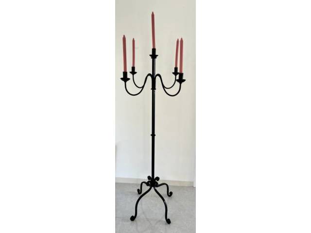 Negro, candelabro de cinco brazos de hierro forjado con velas rosas. Hecho a mano. Altura: 152 cm, Ancho: 62 cm. Solo recogida en Porto Cristo.