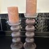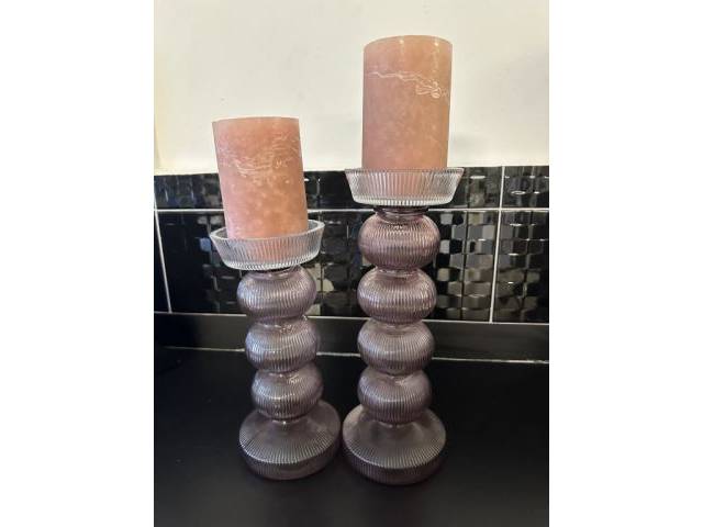 Vendo aquí 2 x candelabros de vidrio en color rosa.