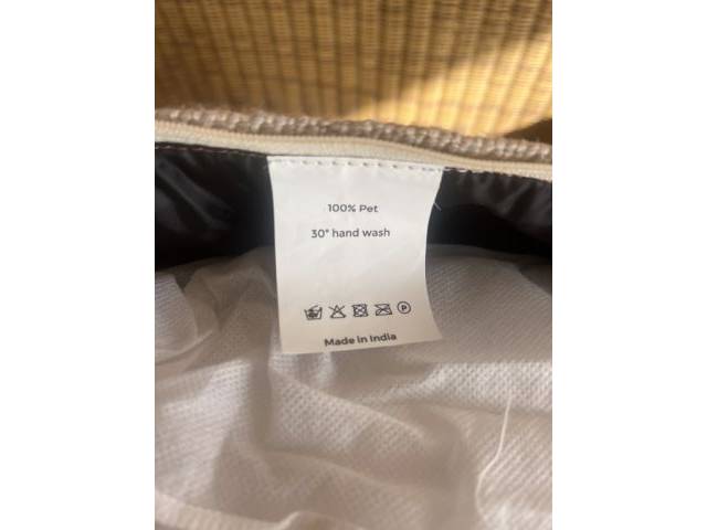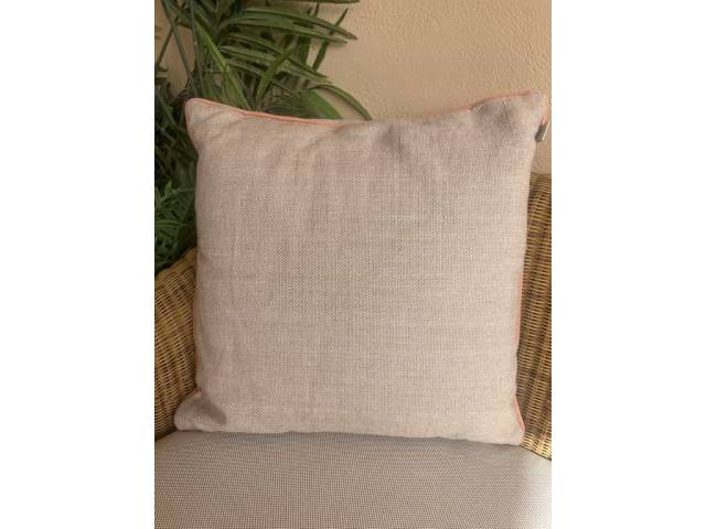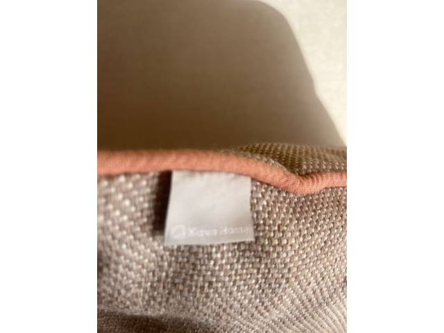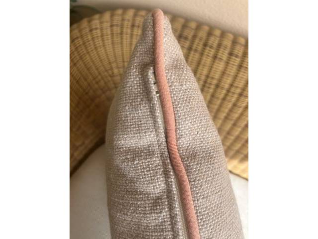 8 almohadas muy bonitas color arena (completas) con ribetes de terracota de Kave Home hechas de fibras PET 100% recicladas, fáciles de limpiar. Muy buen estado, hasta ahora solo servía como decoración.