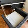 Conjunto de asientos para terraza como nuevo, seis sillas, una mesa y seis cojines.