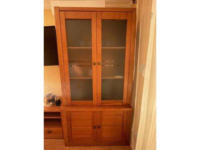 Conjunto completo de muebles para salón compuesto por madera maciza en tono marrón-teca, preferiblemente se vende completo, pero también se puede adquirir por separado.