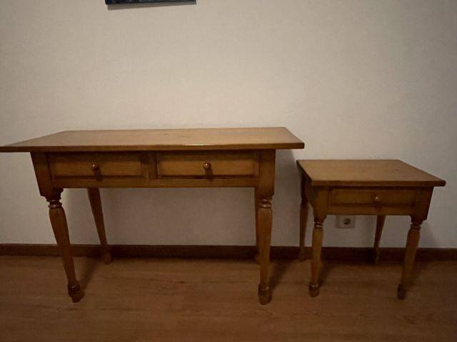 Con dos cajones, caoba. También tenemos a la venta el modelo a juego en tamaño pequeño, como se ve en una foto!