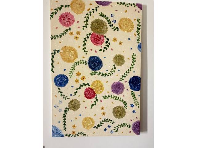 vendo este cuadro acrílico pintado a mano sobre lienzo con flores coloridas.