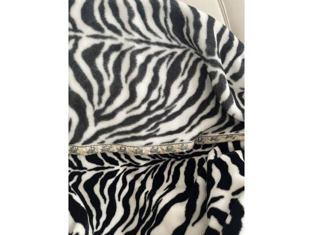 Manta/colcha esponjosa de alta calidad, 260x215 cm, un lado negro/blanco, el otro lado antracita/blanco. Ribete con motivo de cebra. (Precio nuevo €350)