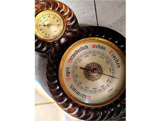 Estación meteorológica Fischer compuesta por termómetro, higrómetro y barómetro
