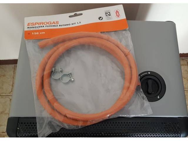 Estufa a gas con conexión y tubo de repuesto envasado original, ¡SIN!!! bombona de gas