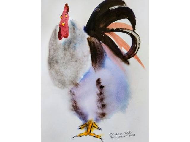 Acuarela original de un gallo ,una pieza artística con colores brillantes,obra reciente y firmada