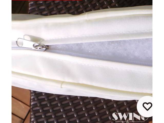 La marca Swing&Harmonie® puede utilizarse tanto como una gran superficie de tumbona como un conjunto de asientos para varias personas gracias a su construcción modular. La fibra de polyrattan fue tejida a mano sobre el bastidor pintado con polvo. Es extremadamente resistente a la intemperie, fácil de mantener y resiste el calor, las heladas, el cloro y el agua salada.