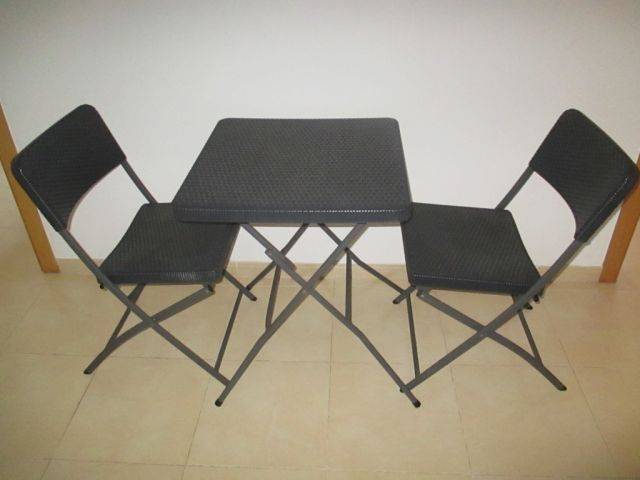 Juego de balcón: 1 mesa, 2 sillas, todo plegable