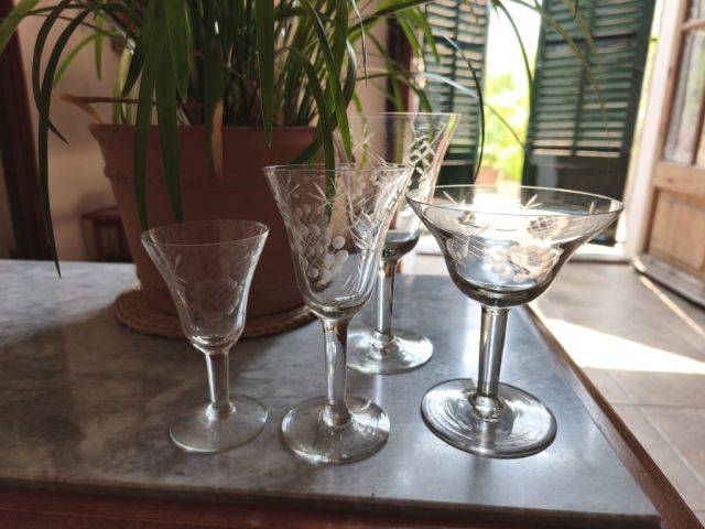 Juego de copas de cristal grabado vintage