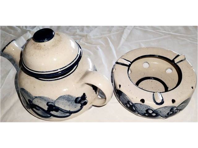 Juego de té, tetera, calentador de té, taza, cerámica, hecho a mano en torno, pintado a mano