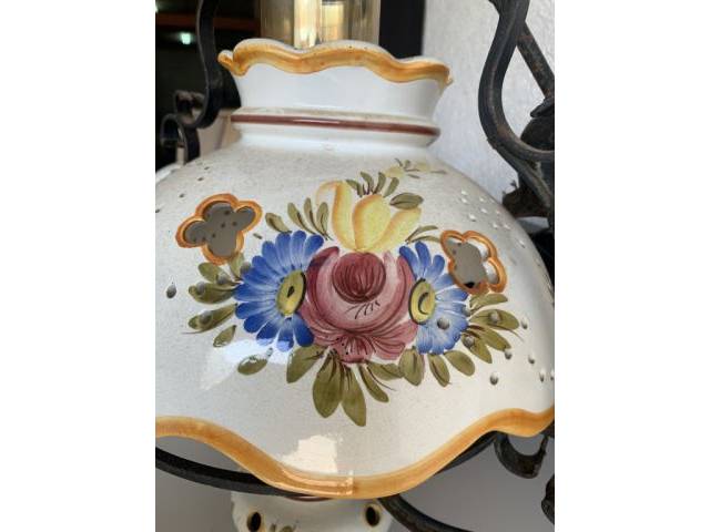 - Pantalla de porcelana con delicadas flores pintadas a mano.