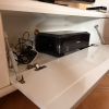 2 cajones en el lateral, gran compartimento con puerta abatible en el centro.