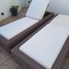 Vendo un exclusivo juego de dos tumbonas de exterior de alta calidad de la marca de diseño belga Manutti. Las tumbonas son robustas, están hechas de polyrattan resistente a la intemperie y se entregan con los cojines color crema.