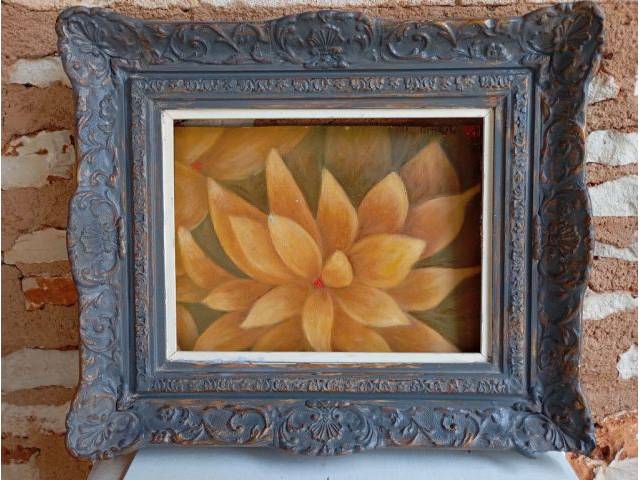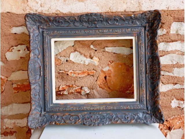 Marco antiguo de madera y moldura de yeso pintado. Medidas 45 x 53.En condiciones aceptables.
