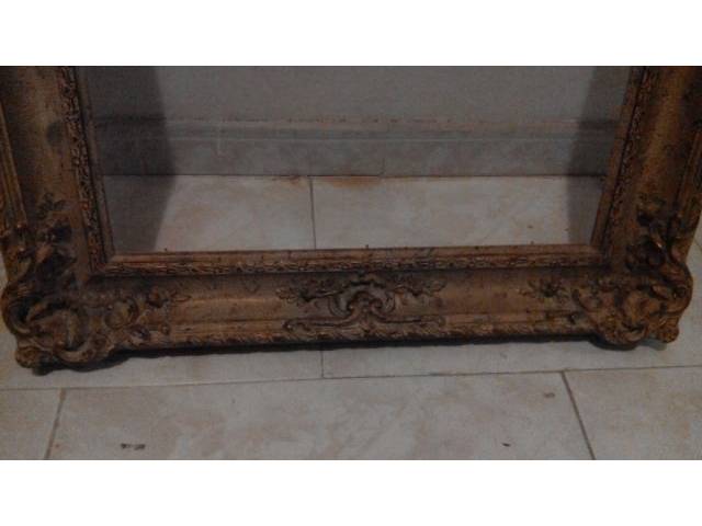 Marco de madera trabajado con muchos detalles. Tenía la pintura del retrato de un familiar. Las fotos son de mala calidad y el color es algo diferente en realidad, pero se puede venir a ver sin compromiso.