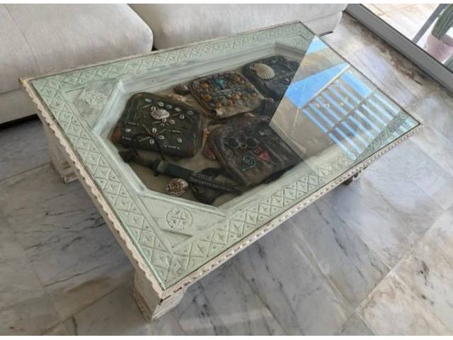 Mesa de centro Marroqui echo con madera y es antigua con los bolsos también y queda muy bonito en casa
