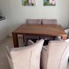 Vendo una bonita y resistente mesa de comedor de madera en un tono marrón cálido.