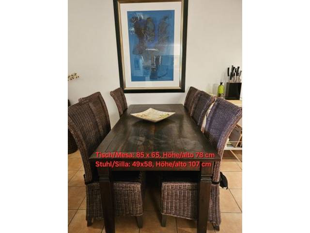 Mesa maciza de madera con 6 sillas incl. cojines de asiento por 200€ negociables en Cala Bona/Port Verd disponible para la venta de inmediato.