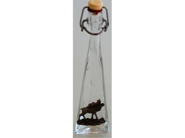 Mini botella de vidrio con tapa abatible y motivo animal fabricada en peltre