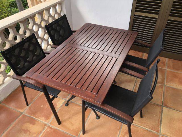 Ofrezco 4 sillas de jardín y 2 mesas un juego de cuatro y uno de dos ver fotos.