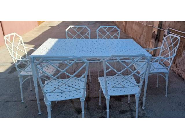 Conjunto jardín de forja pesado mesa con 6 sillas, medidas 135 x 85.