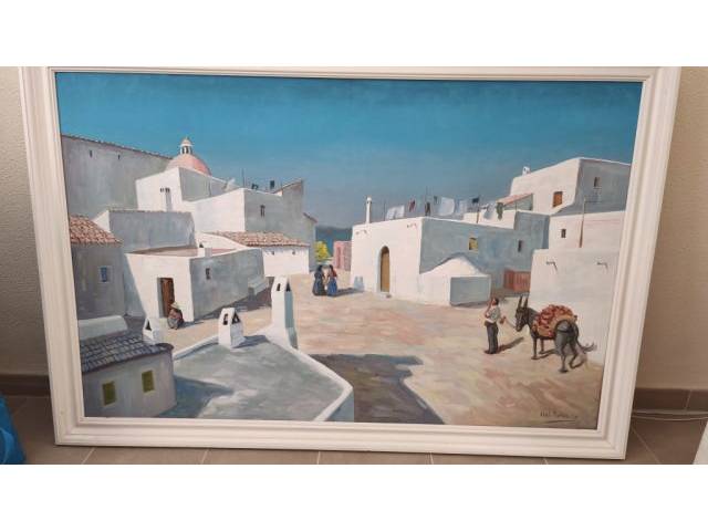 Pintura paisaje de Ibiza, años 60 - 70.