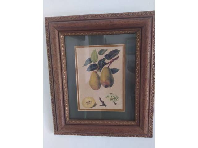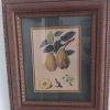 Ilustración botánica enmarcada de una planta de fresa (Fragaria) y peras.