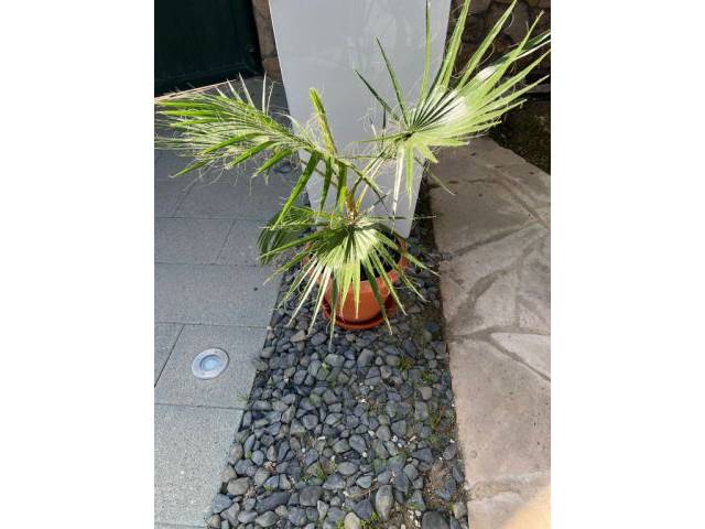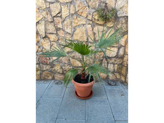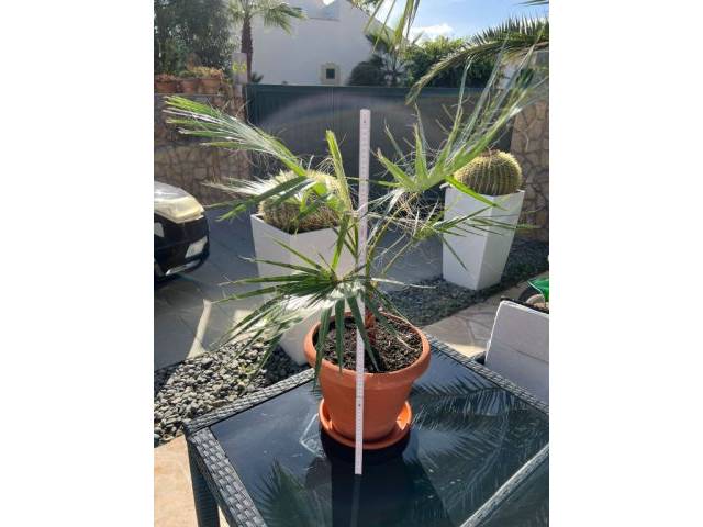 Se vende esta palmera con maceta y platillo de unos 80 cm de altura.