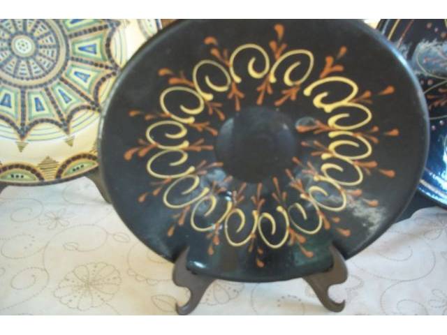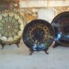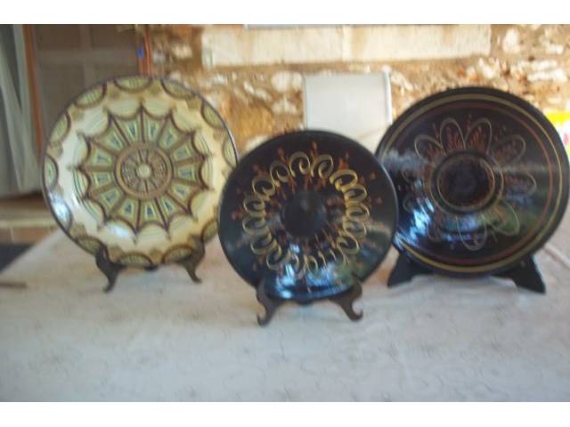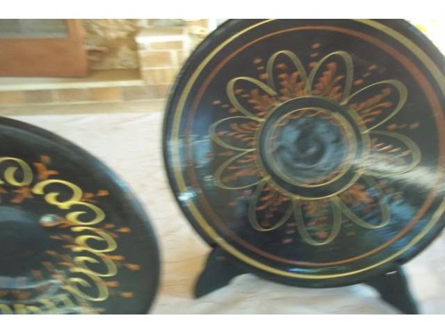 2 platos cerámica decorativos . Medidas 20 y 25 cm. . Colores oscuros. Se pueden colgar de la pared. Precio x los dos
