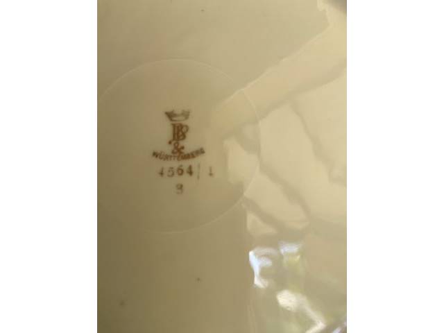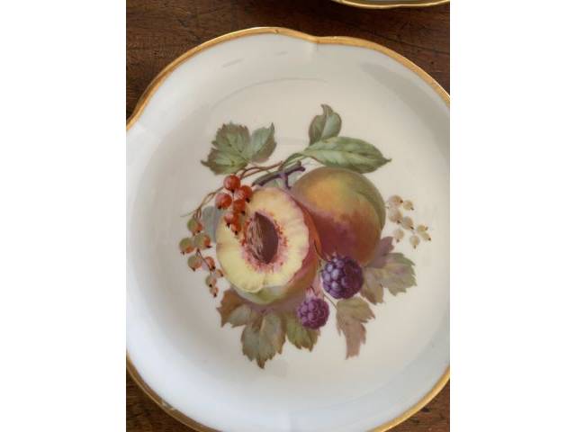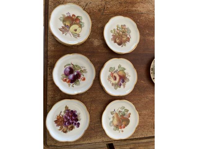 10 platos de porcelana pintados a mano con borde dorado, en muy buen estado