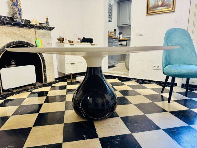 Color: Plato/ Blanco Fénix, Base de Mármol/ Negro Marquina