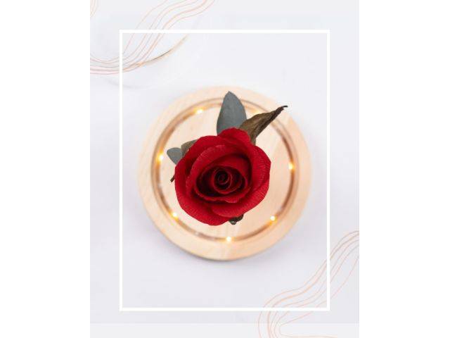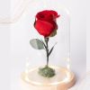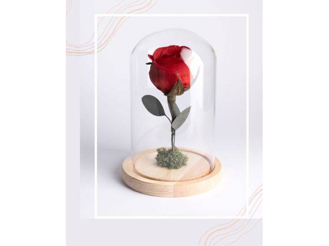 Rosa eterna de papel, bajo cúpula de cristal con luz LED