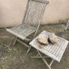 Silla de teca con mesa (ligeramente dañada en la pata)