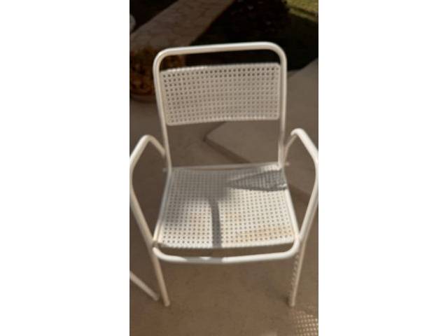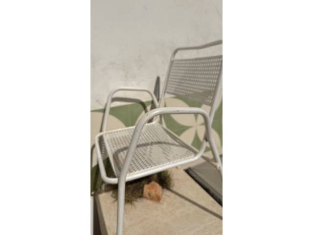 Vendo dos sillas de metal muy bonitas con la típica chapa perforada. Las sillas han sido cuidadosamente tratadas por mí. Por eso ambas están en muy buen estado. El precio es por las dos sillas.