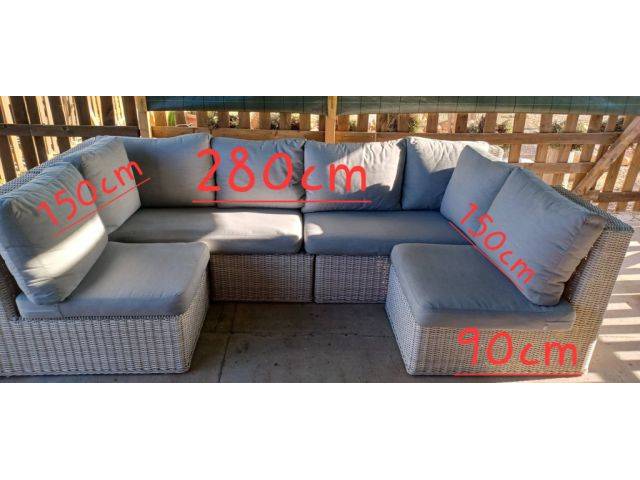 Sofá jardín con varias opciones de colocación, marca de primera calidad. Médula sintética