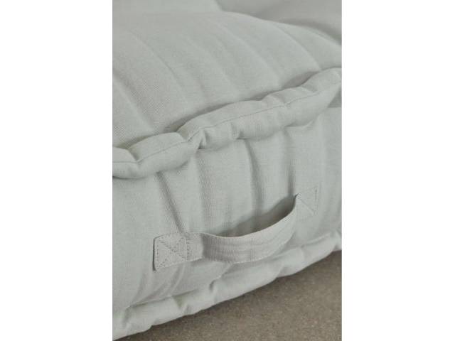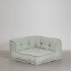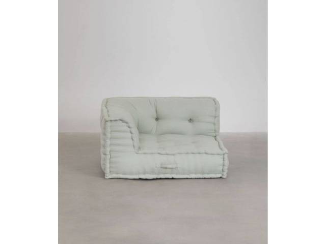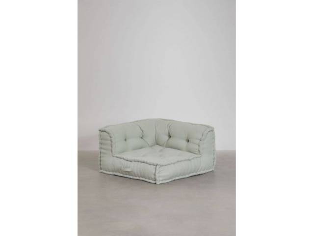 Consta de 2 x pies de sofá de madera 80x80 y 2x módulos de sofá de esquina algodón color Mousse Celadón (verde salvia) 80x80.