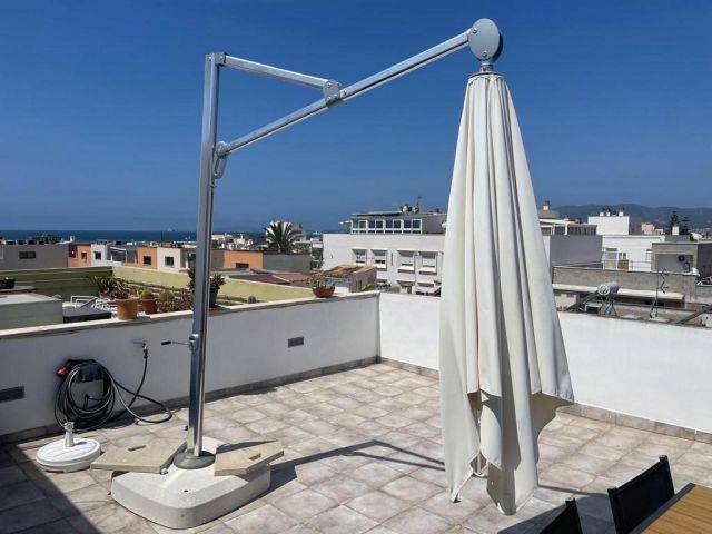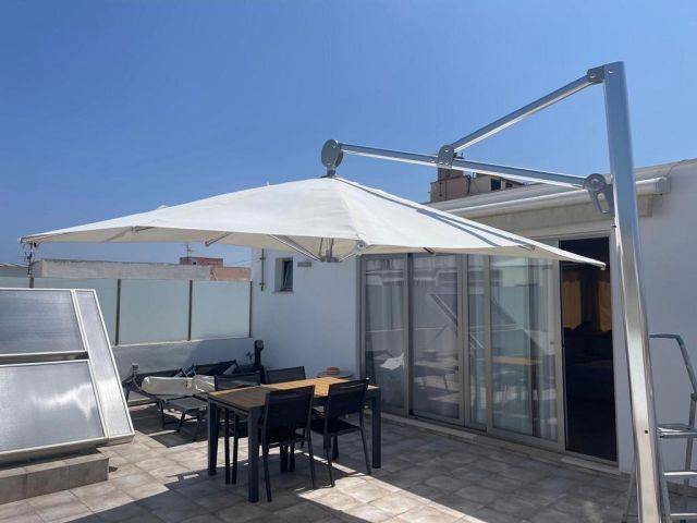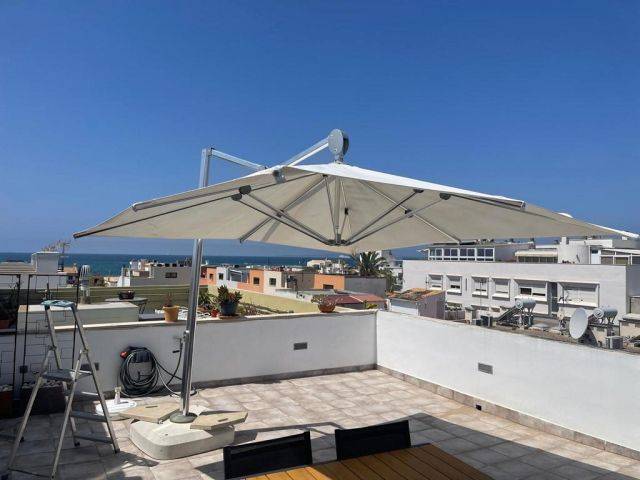 Sombrilla de alta calidad, voladizo y regulable en altura en buen estado para piscina y jardín en venta.