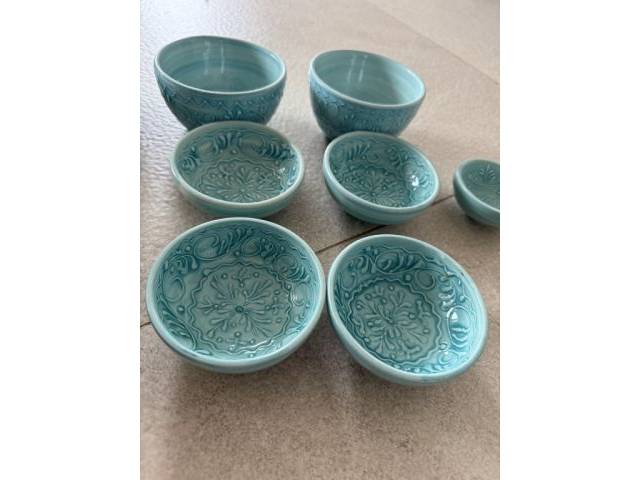 Vajilla turquesa de Ca Na Mel, porcelana de barro mallorquina.