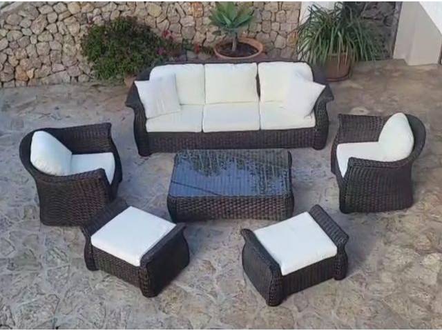 El ratán sintético es una imitación del ratán natural, fabricado con polietileno de alta densidad (HDPE) y muy resistente, por lo que es ideal para uso exterior.