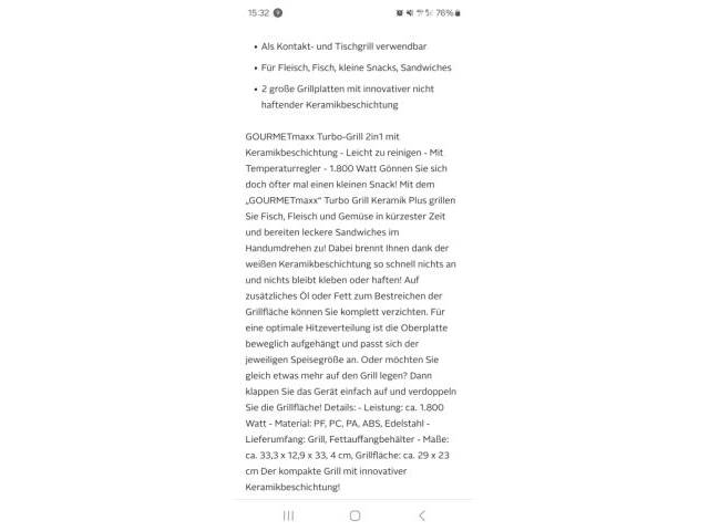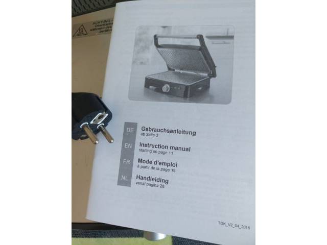 Con instrucciones de uso, solo se usó 1 vez, no se usó porque había una parrilla grande disponible, a mitad de precio (50 %)