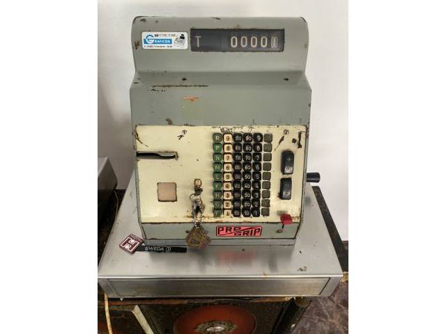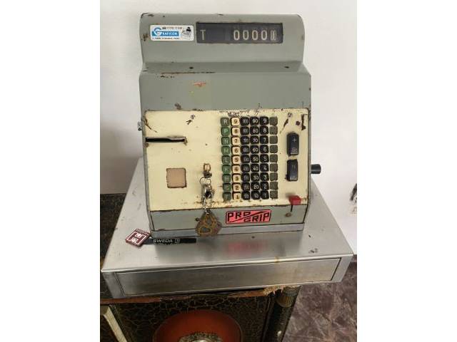 vengo maquina registradora antigua, clasica y funciona manual o tambien con corriente.