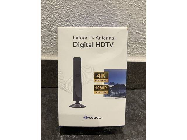 Antena HDTV nueva y en su embalaje original, ideal para camping, excursiones o vacaciones, en venta.