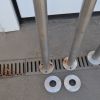 11 postes de acero inoxidable barandilla para montaje en el suelo, altura 88 cm, diámetro 4,5 cm con 4 orificios / rosca cada uno para soportes de truss. Precio original 52.-€. Ubicación: Cala Dor.Tfl 666 944 124