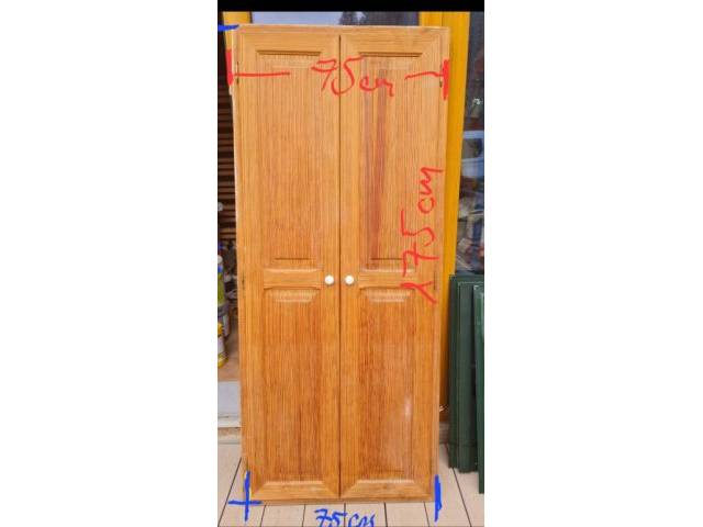 Puerta doble de madera, revestimiento para armario o similar, ancho total incl. marco 75 cm, altura total 175 cm