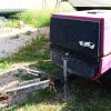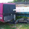 El remolque tiene luces traseras nuevas, todavía está registrado con una placa de matrícula verde y se puede cargar en un camión en su propio eje o por medio de un ojo de grúa (arriba en el centro).
