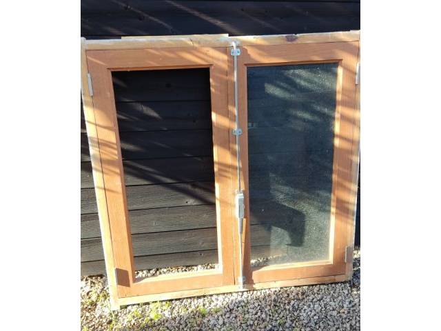 Vendo una ventana de madera, 1m x 1m, acristalada sencillamente, quizá útil para una caseta de jardín o similar. En un batiente falta el cristal, que puede colocarse de nuevo.