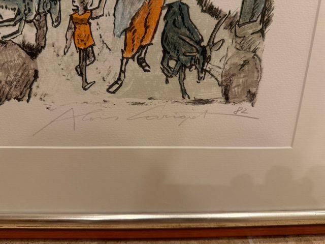 En venta está un grabado original firmado a mano del conocido artista suizo Alois Carigiet (1902–1985). Carigiet es considerado uno de los grabadores suizos más importantes del siglo XX; sus obras son especialmente demandadas en los Grisones (Graubünden) y Zúrich.